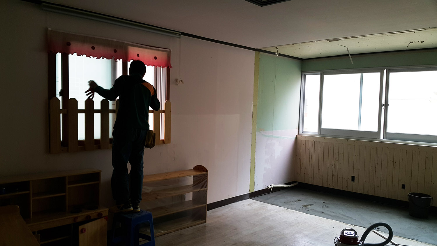 유치원/어린이집을 정기적으로 실시하는 청소로 청소전문 장비와 친환경 세제등을 사용하여 그 동안 사용하면서 발생한